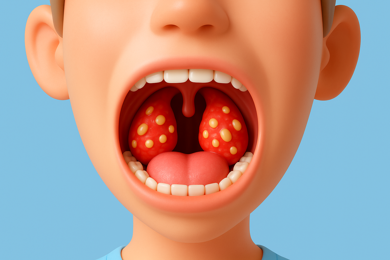 Gejala: nyeri tenggorokan, demam ringan, gejala flu.